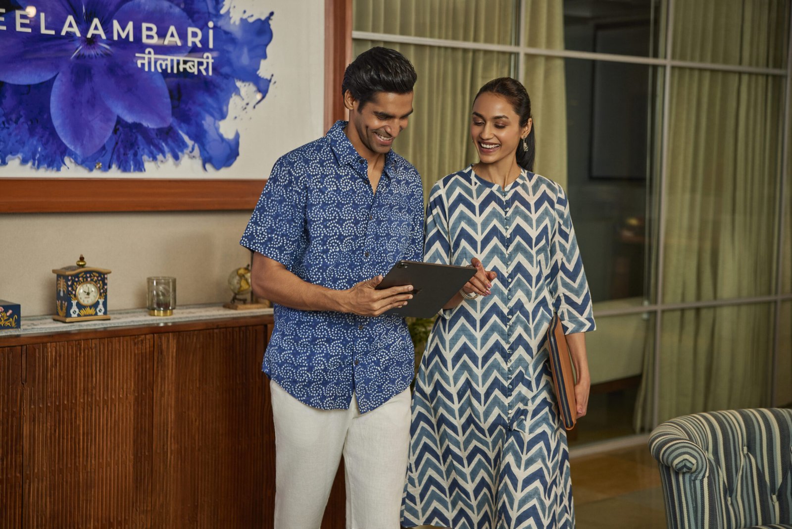 The workwear curation seamlessly blends artisanal heritage with contemporary functionality. Women can pick from versatile options- short dresses, co-ord sets, kurtas, dupattas, and saris featuring delicate Chikankari, hand embroidery, and block prints. The men’s edit features crisp shirts, short and long kurtas, and Bandhgala jackets, showcasing Ikat weaves alongside Bagru, Ajrakh, and Dabu prints. Both these ranges are handcrafted in premium textured cotton and linen. Complementing the look, the ensembles can be paired with leather bags and an elegant jewellery selection of earrings, rings, and bracelets, featuring tribal and floral designs in sleek silver, gold, and dual-tone finishes.