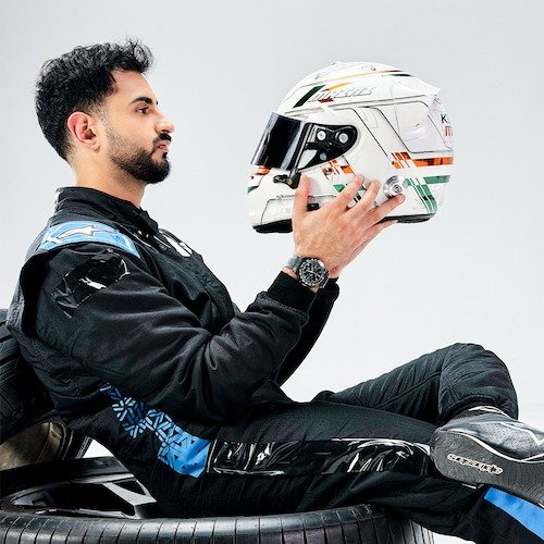 Formula 1 reserve driver Kush Maini wearing the Rotoris Astonia Sports Chronograph