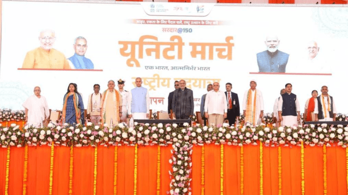 Shri C. P. Radhakrishnan, Vice President of India, termed the culmination of the Sardar@150 Unity March “a celebration of India’s enduring spirit of unity, duty and nation-building”. He noted that the participation of padyatris across the country proves that the fire of unity ignited by Sardar Vallabhbhai Patel remains alive today and will continue to burn brightly. Describing Sardar Patel as the architect who integrated over 560 princely states to build an Akhand Bharat, he said the nation remains eternally indebted to him, emphasising that India will always remain grateful to Sardar Patel, whose leadership unified a fragmented land and laid the foundation of a truly united nation. The Vice President added that Sardar Patel’s dream of a strong and self-reliant India is being rapidly realised under the visionary leadership of Prime Minister Shri Narendra Modi, whose reforms and youth-centric initiatives are steering the nation towards Viksit Bharat 2047. He urged the youth to contribute daily to nation-building with unity, discipline and national spirit. Shri Radhakrishnan stated that the padyatra reflects the collective resolve of a confident, new India. Concluding his remarks, he affirmed that India’s greatest strength is its unity, and that “India was one, is one, and will always remain one.”